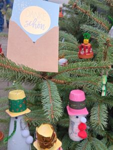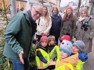 Vertreter*innen der Stadt, des Stadtmarketings und des Citymanagements hatten zuvor die schönsten Kita- und Grundschul-Bäume sowie den schönsten Baum der weiterführenden Schulen gewählt. „Wir haben uns sehr über eure Bäume und die faszinierenden Ideen für den Weihnachtsschmuck gefreut“, so Luisa Stevens als Vertreterin der Jury.