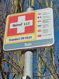 Auf den Schildern steht neben der Notrufnummer 112 auch jeweils eine Standortnummer, die beim Notruf mit angegeben wird, damit die Rettungsfahrzeuge schneller an den Einsatzort kommen. Insbesondere wenn bei Notfällen die telefonische Ortsbeschreibung schwierig ist, kann der Einsatzort über die Standortnummer genau lokalisiert werden. „Das ist ein sinnvolles System des Regionalverbandes Ruhr, welches wir gerne übernehmenn. Es ist gut zu wissen, dass man diese Schilder im Notfall nutzen kann, wenn man auf unseren schönen Radwegen und Wanderstrecken unterwegs ist und im Notfall schnell Hilfe benötigt“ so Bürgermeister Hans-Günter Draht.