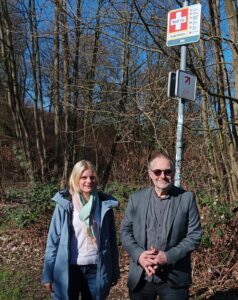 Bürgermeister Hans-Günter Draht und Ina Borchert vom städtischen Fachdienst Wirtschaftsförderung und Stadtmarketing am RuhrtalRadweg in Wengern. Foto: Stadt Wetter (Ruhr)